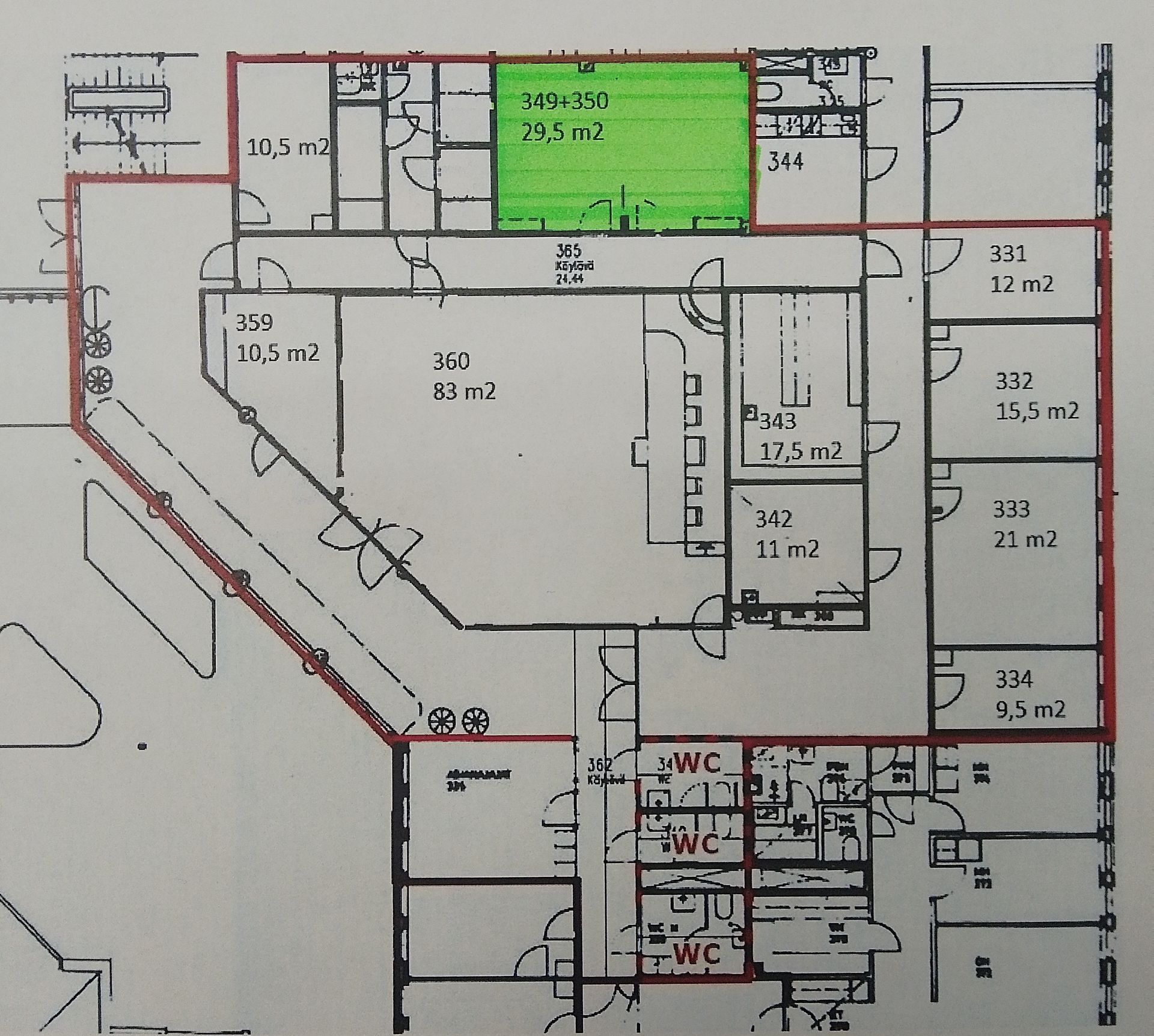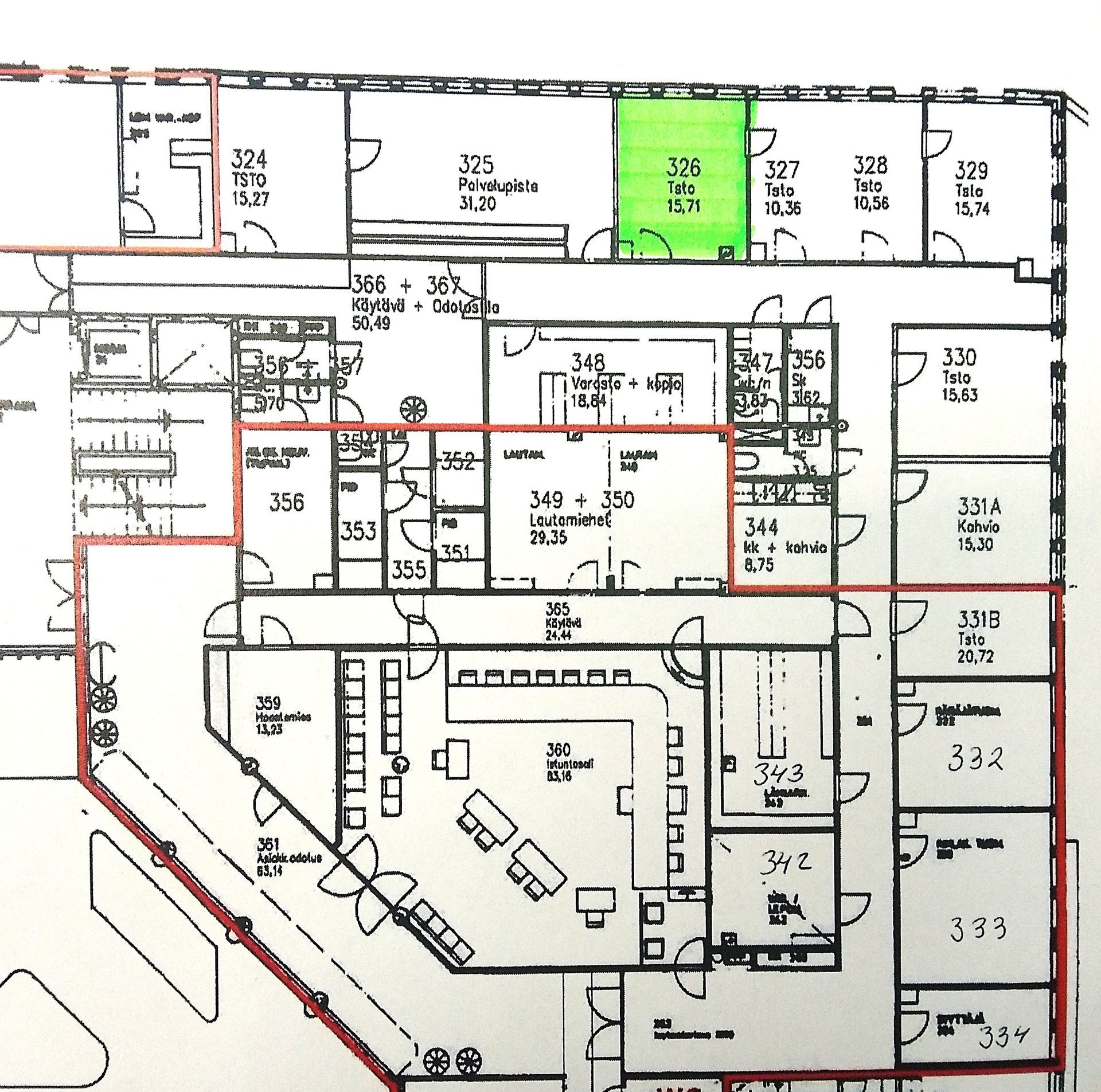 | Tilatyyppi: | Toimistokokonaisuus, jossa oma keittiö/kahvihuone ja wc:t |